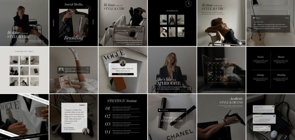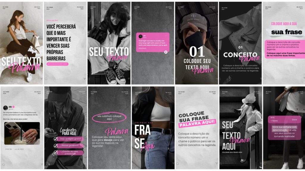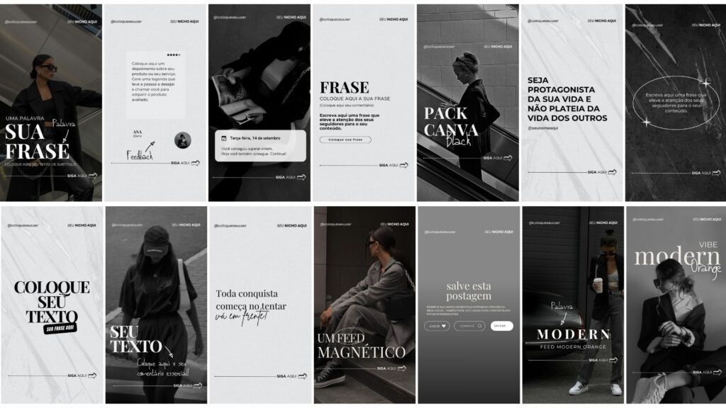 Modelos de stories profissionais de cada tema 100% editáveis para deixar o design do feed alinhado com os stories.